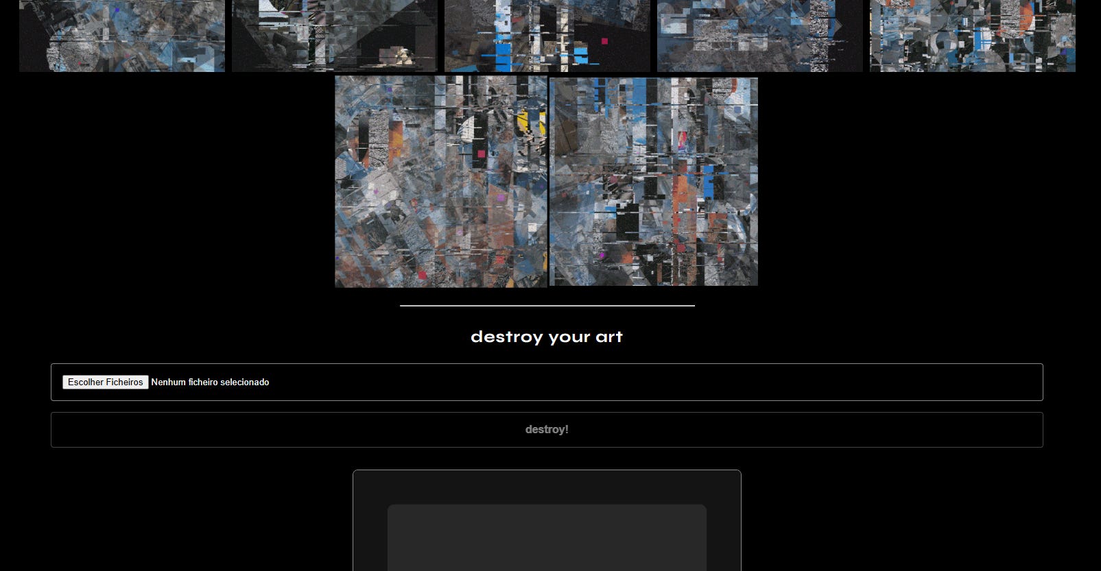 Recentemente também criei um projeto artístico chamado DQAD, até já falei dele. É uma aplicação web em HTML, CSS e Javascript que me permite mixar imagens com a ideia de destruir e criar algo novo. Acabou que fui pirando e quando me dei conta, já tinha criado um site para exibir o trabalho e deixei lá a “ferramenta de mixagem” disponível pra quem quiser subir e mixar suas próprias imagens.